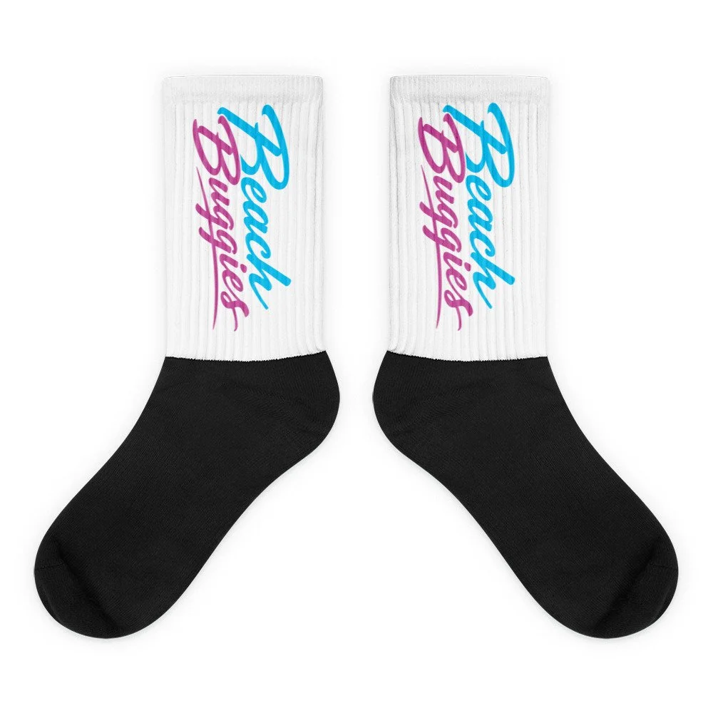 These socks are extra comfortable thanks to their cushioned bottom. The foot is black with artwork printed along the leg with crisp, bold colors that won't fade.